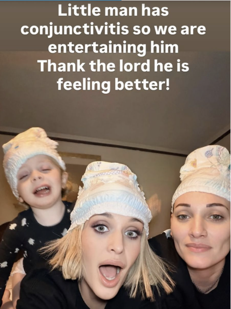 “Little man has conjunctivitis so we are entertaining him,” Kelly Osbourne wrote in the caption of her photo. “Thank the lord he is feeling better!”