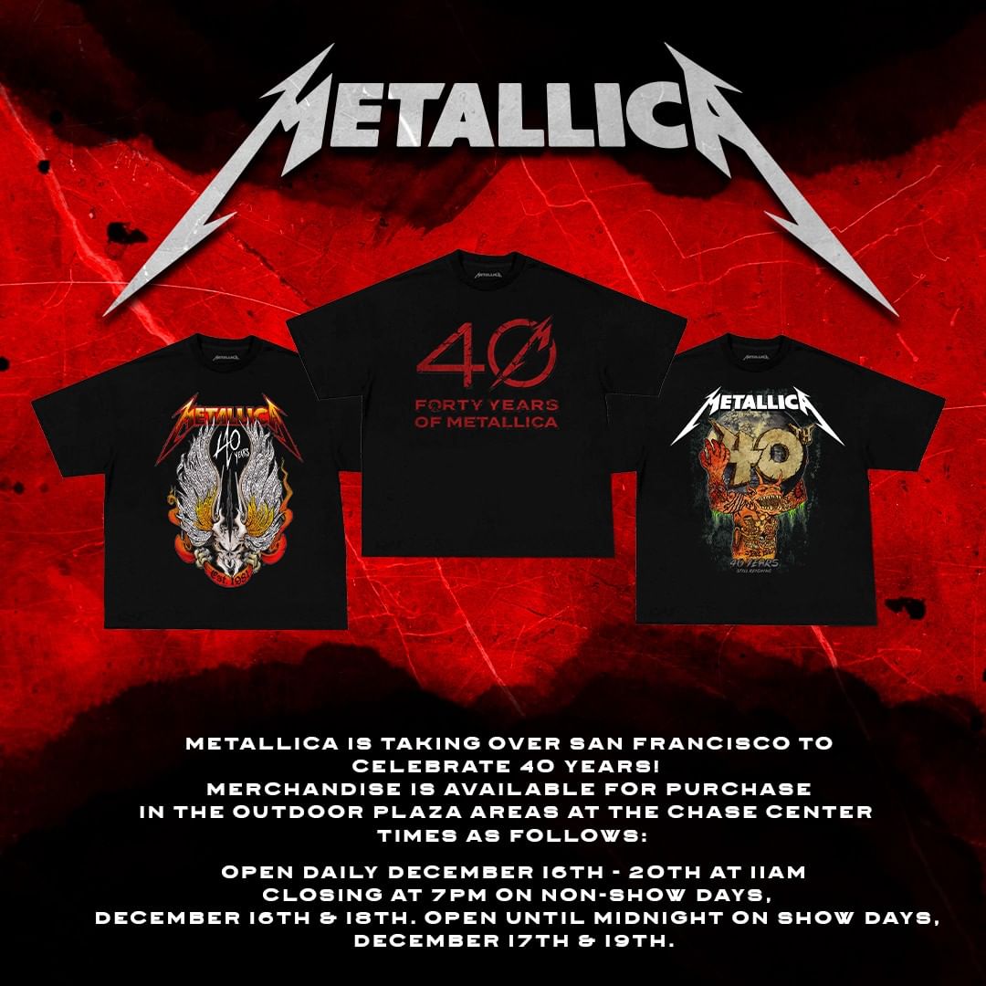 After the show on December 17, Metallica announced that their fans could purchase brand-new merchandise specially designed to celebrate the band’s 40th anniversary. According to the photo revealing the merchandise, they will be available for purchase in the outdoor plaza areas at the Chase Center.