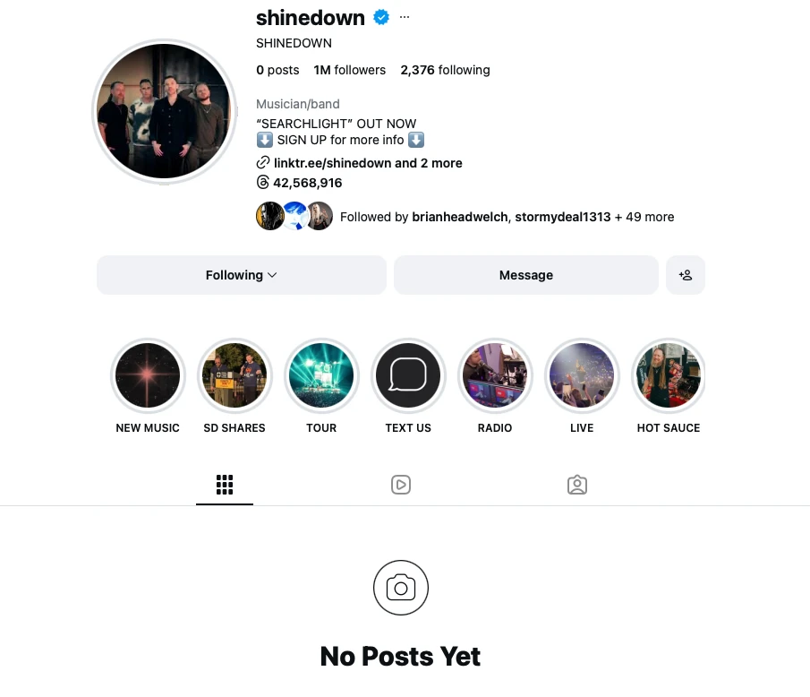 Shinedown has cleared nearly their entire Instagram with no explanation, leaving only Reels. Reports from Instagram confirmed this development. This arrived just months after releasing ‘Searchlight’, and the band continues hinting at a major announcement.