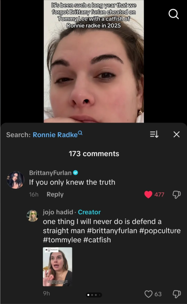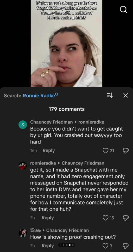 Tommy Lee’s wife, Brittany Furlan Lee, and Falling In Reverse frontman Ronnie Radke once again clashed over a catfish scandal that occurred in 2025. Both parties shared their sides of the story on social media, as reported by Falling in Reverse fans on Reddit.